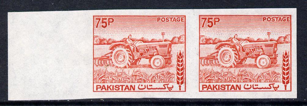 Pakistan 1978-81 Tractor 75p die II imperf pair unmounted mint, SG 473a