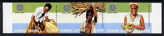 Sierra Leone 1995 50th Anniversary of Food & Agriculture Organisation imperf strip of 3 unmounted mint, as SG 2329-31