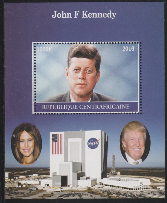 Central African Republic 2016 John F Kennedy #2 perf s/sheet containing 1 value unmounted mint. Note this item is privately produced and is offered purely on its thematic appeal