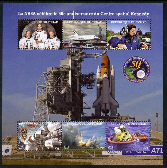 Chad 2012 50th Anniversary of NASA's Kennedy Space Centre perf sheetlet containing 6 values unmounted mint. Note this item is privately produced and is offered purely on its thematic appeal