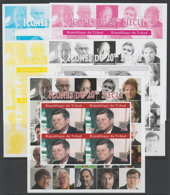 Chad 2020 Icons of the 20th Century - John Kennedy imperf set of 5 progressive sheets comprising the 4 individual colours and completed design unmounted mint. Note this item is privately produced and is offered purely on its thematic appeal