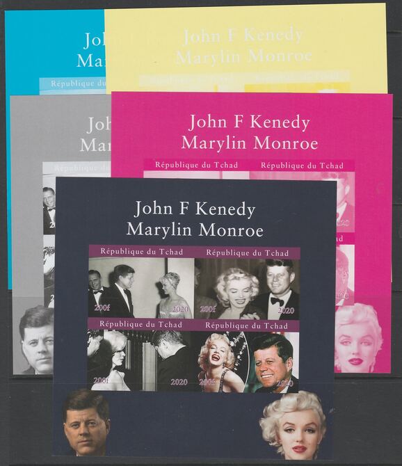 Chad 2020 John Kennedy & Marilyn Monroe imperf set of 5 progressive sheets comprising the 4 individual colours and completed design unmounted mint. Note this item is privately produced and is offered purely on its thematic appeal