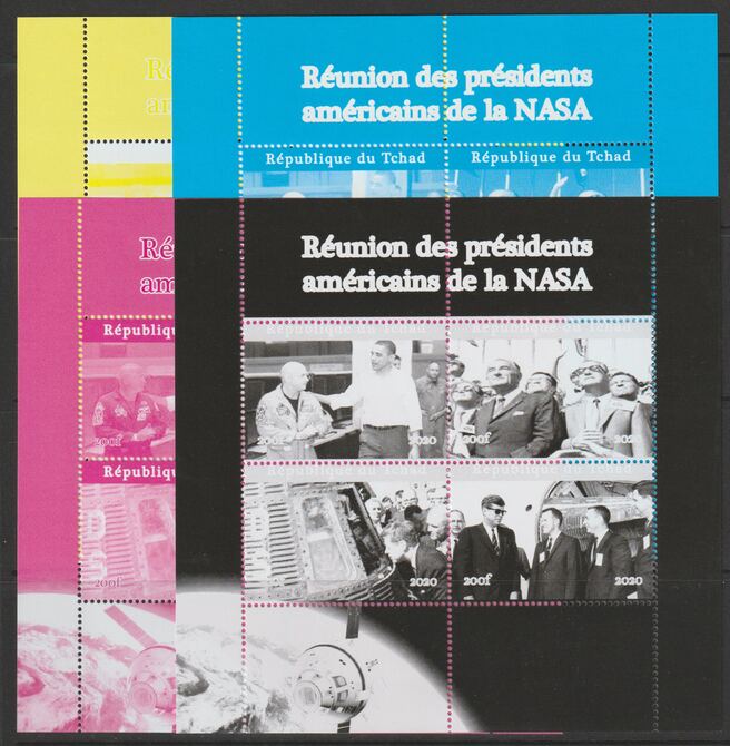 Chad 2020 US Presidential Visits to NASA - perf sheetlet containing 4 values - the set of,4 progressive proofs comprising the 4 individual colours unmounted mint. Note this item is privately produced and is offered purely on its thematic appeal