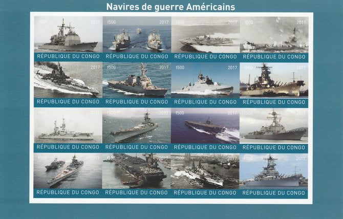 Congo 2017 Battle Ships of America imperf sheetlet containing 16 values unmounted mintNote this item is privately produced and is offered purely on its thematic appeal, it has no postal validity
