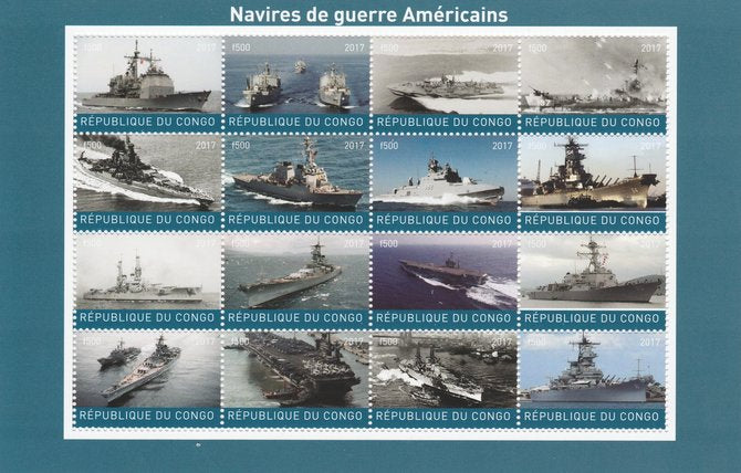 Congo 2017 Battle Ships of America perf sheetlet containing 16 values unmounted mint. Note this item is privately produced and is offered purely on its thematic appeal