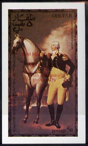 Dhufar 1976 USA Bicentenary (George Washington) imperf deluxe sheet (5r value) opt'd APOLLO II 10th Anniversary in red unmounted mint