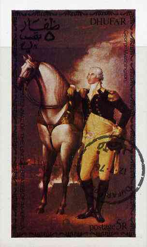 Dhufar 1976 USA Bicentenary (Painting of George Washington with his Horse) imperf deluxe sheet (5R value),cto used