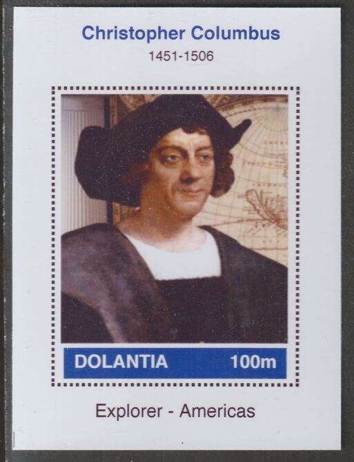 Dolantia (Fantasy) Christopher Columbus imperf deluxe sheetlet on glossy card (75 x 103 mm) unmounted mint