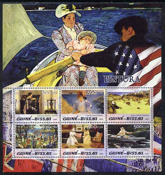 Guinea - Bissau 2005 Paintings by American Impressionists perf sheetlet containing 6 values unmounted mint Mi 3055-60