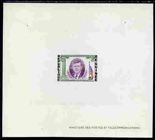 Guinea - Conakry 1964 Kennedy Memorial 25f imperf deluxe sheet in issued colours on sunken glazed card, some minor imperfections