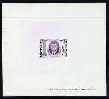 Guinea - Conakry 1964 Kennedy Memorial 5f imperf deluxe sheet in issued colours on sunken glazed card