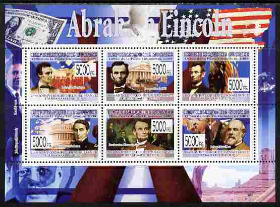 Guinea - Conakry 2009 Abraham Lincoln perf sheetlet containing 6 values unmounted mint Yv 6540-45
