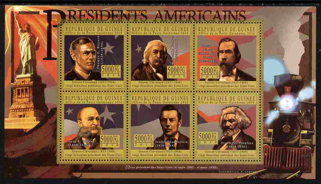 Guinea - Conakry 2010-11 Presidents of the USA #22 - Grover Cleveland perf sheetlet containing 6 values unmounted mint Michel 8042-47
