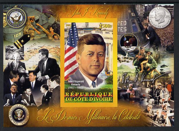Ivory Coast 2013 Celebrities of the last Millennium - John F Kennedy imperf deluxe sheet containing one rectangular value unmounted mint