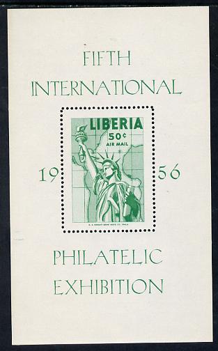 Liberia 1956 Fifth Int Stamp Exhibition perf m/sheet proof in green only unmounted mint similar to SG MS 783