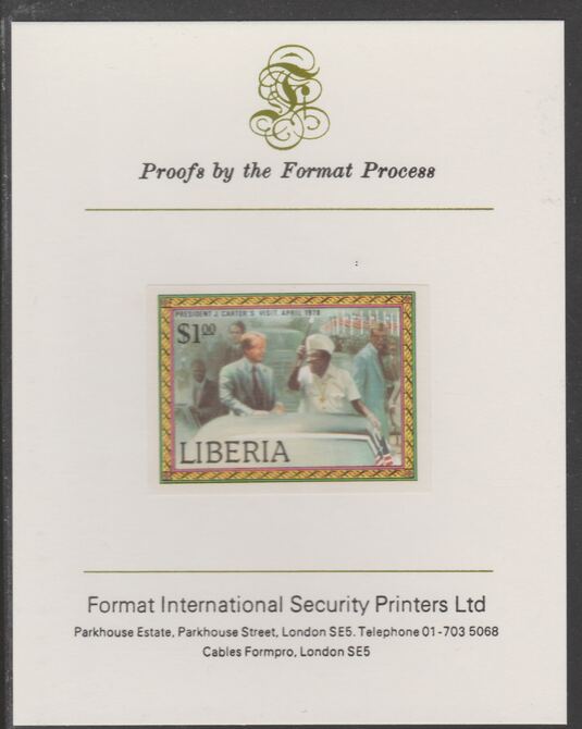 Liberia 1978 Visit by President Carter $1 imperf proof mounted on Format International proof card, as SG 1355