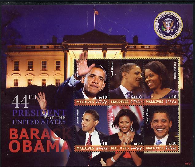 Maldive Islands 2009 Barack Obama - 44th President of the United States perf sheetlet containing 6 values unmounted mint. Note this item is privately produced and is offered purely on its thematic appeal