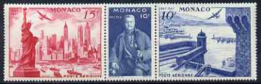 Monaco 1947 International Centenary Stamp Exhibition se-tenant strip of 3 unmounted mint, SG 336a