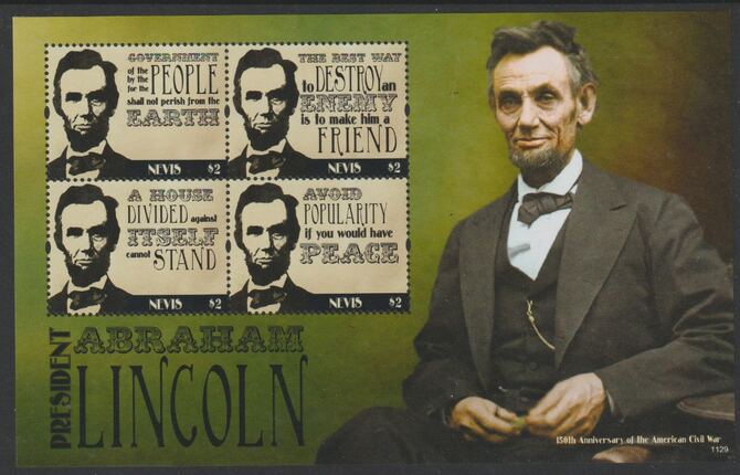 Nevis 201 Abraham Lincoln perf sheet containing 4 values unmounted mint