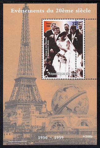 Niger Republic 1998 Events of the 20th Century 1950-1959 Marriage between John Kennedy & Jackie Bouvier perf souvenir sheet with perforations doubled unmounted mint