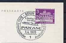 Postmark - West Berlin 1966 postcard bearing 3pfg stamp with special cancellation for the First Boeing 727 Pan-Am Flight between West Berlin and Frankfurt illustrated with 727 aircraft
