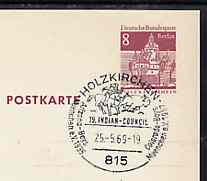 Postmark - West Berlin 1969 8pfg postal stationery card with special cancellation for Nineteenth Indian Council illustrated with Indian hunting bison