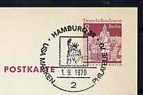 Postmark - West Berlin 1970 8pfg postal stationery card with special cancellation for 'Philatelie 70' Stamp Exhibition illustrated with Statue of Liberty on Stamp