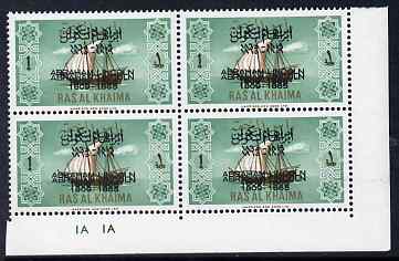 Ras Al Khaima 1965 Ships 1r with Abraham Lincoln overprint doubled, unmounted mint plate block of 4, SG 18var