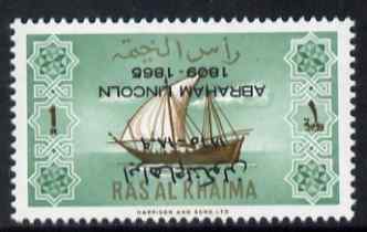 Ras Al Khaima 1965 Ships 1r with Abraham Lincoln overprint inverted, unmounted mint, SG 18var
