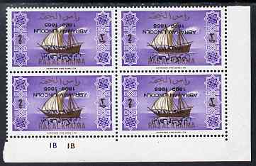 Ras Al Khaima 1965 Ships 2r with Abraham Lincoln overprint inverted, unmounted mint plate block of 4, SG 19var