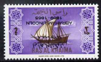 Ras Al Khaima 1965 Ships 2r with Abraham Lincoln overprint inverted, unmounted mint, SG 19var