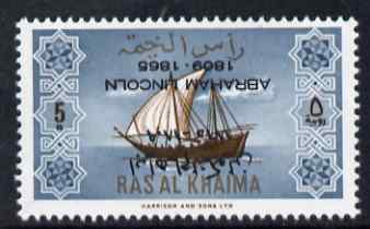 Ras Al Khaima 1965 Ships 5r with Abraham Lincoln overprint inverted, unmounted mint, SG 20var