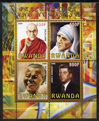 Rwanda 2009 Peacemakers & Humanists #2 perf sheetlet containing 4 values (Dalai Lama, Mother eresa, N Mandela & Kennedy) unmounted mint