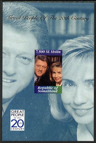Somaliland 1999 Great People of the 20th Century - Bill & Hillary Clinton imperf souvenir sheet unmounted mint. Note this item is privately produced and is offered purely on its thematic appeal