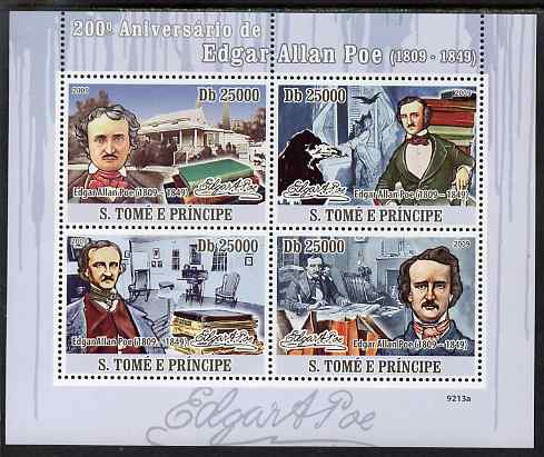 St Thomas & Prince Islands 2009 200th Birth Anniversary of Edgar Allan Poe perf sheetlet containing 4 values unmounted mint