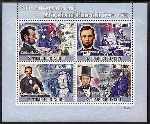 St Thomas & Prince Islands 2009 Abraham Lincoln perf sheetlet containing 4 values unmounted mint