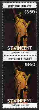St Vincent 1986 Statue of Liberty Centenary $3.50 similar to m/sheet but from the unique multi-country sheet intended for a special first day cover but never issued, unmounted mint in a vertical pair to authenticate its source