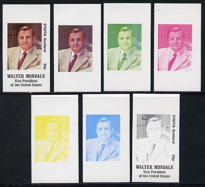 Staffa 1977 Carter/Mondale Inauguration 20p Walter Mondale (Vice President) set of 7 imperf progressive colour proofs comprising the 4 individual colours plus 2, 3 and all 4-colour composites unmounted mint