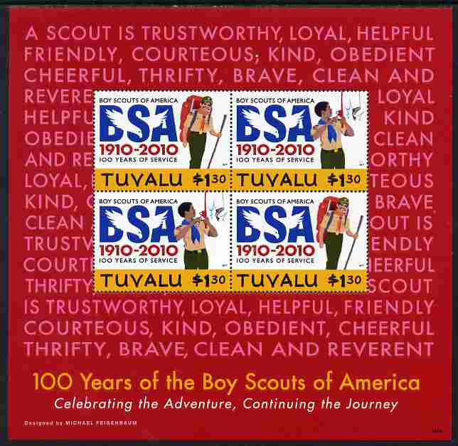 Tuvalu 2010 Centenary of Boy Scouts of America #2 perf sheetlet containing 4 values (red background) unmounted mint SG MS 1396
