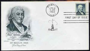 United States 1954-65 Paul Revere 25c def on illustrated cover with first day cancel, SG 1048