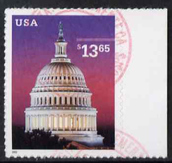 United States 2002 Capitol, Washington $13.65 self adhesive fine cds used still on backing paper, SG 4164