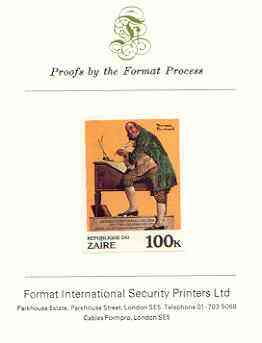 Zaire 1981 Signing Declaration of Independence by Norman Rockwell 100k imperf proof mounted on Format International proof card