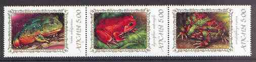 Abkhazia 2000 Frogs & Toads #2 se-tenant perf strip of 3 unmounted mint