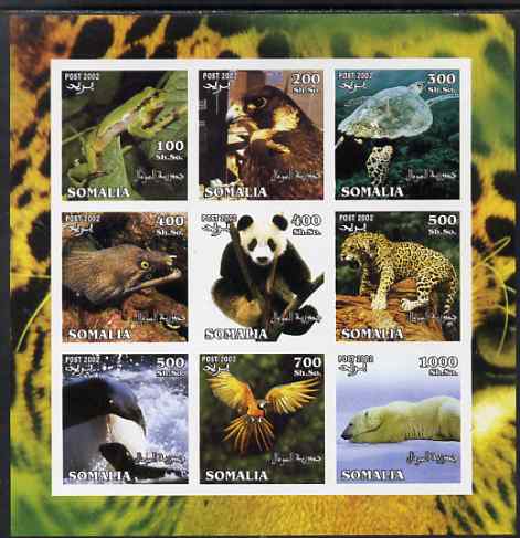 Somalia 2002 Wildlife imperf sheetlet containing 9 values unmounted mint. Note this item is privately produced and is offered purely on its thematic appeal