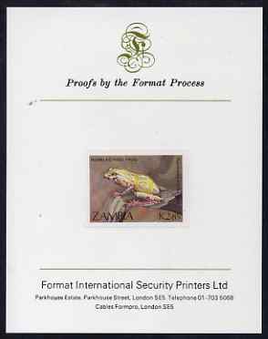 Zambia 1989 Reed Frog 2k85 imperf proof mounted on Format International proof card as SG 569