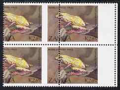Zambia 1989 Reed Frog 2k85 marginal block of 4 from right of the sheet with superb 10mm misplacement of perforations, (part of stamp blank) unmounted mint SG 569var