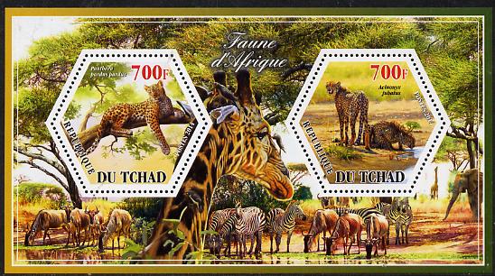 Chad 2014 Animals of Africa #2 perf sheetlet containing two hexagonal-shaped values unmounted mint