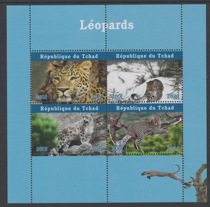 Chad 2020 Leopards perf sheetlet containing 4 values unmounted mint. Note this item is privately produced and is offered purely on its thematic appeal