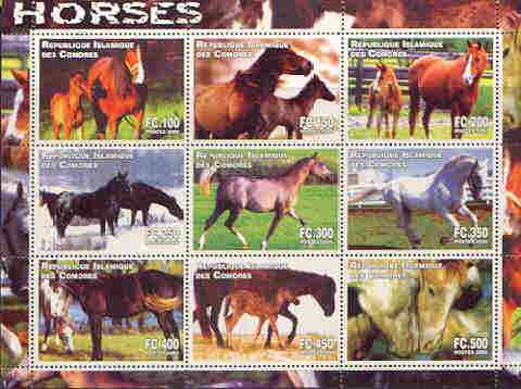 Comoro Islands 2000 Horses perf sheetlet containing complete set of 9 values unmounted mint