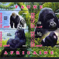 Congo 2012 Gorillas perf sheetlet containing 4 values fine cto used